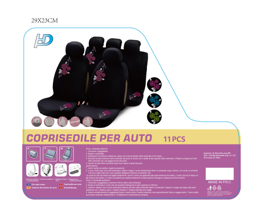 11 részes ÜLÉSHUZAT hímzett mintával CIPÁZROS+LEGZSÁKOS /HD6938P