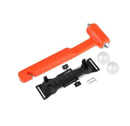 Kombinált üvegtörő kalapács és biztonsági övvágó vészhelyzetekhez, amely lehetővé teszi a gyors kiszabadulást baleset esetén. Az edzett heggyel ellátott üvegtörő alkalmas az oldalsó autóüvegek betörésére, míg a beépített övvágó segítségével a beszorult biztonsági öv könnyen átvágható. Kompakt méretének köszönhetően könnyen elhelyezhető az utastérben, mindig kéznél tartható. Ideális biztonsági kiegészítő minden személyautóba, ahol fontos a gyors és hatékony segítség vészhelyzetben.