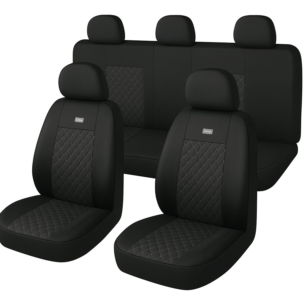 2 első ülés, 1 hátsó ülés (ülőlap + háttámla), 5 fejtámla huzat, 2 háttámla középső rész