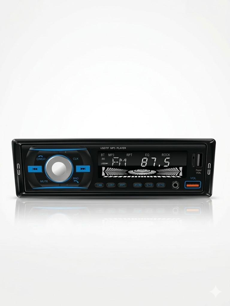 Vezeték nélküli (Bluetooth): Párosítsd a telefonodat másodpercek alatt! Hallgasd a kedvenc Spotify-listáidat, vagy telefonálj biztonságosan a beépített kihangosító funkcióval.Sokoldalú zenelejátszás: Nem csak rádió! Használd az előlapi USB-portot, helyezz be egy SD/MMC kártyát, vagy csatlakoztass bármilyen eszközt az AUX bemeneten keresztül.Erőteljes hangzás: A 4 x 60W-os MOS-FET teljesítmény garantálja, hogy a zene dinamikusan és tisztán szólaljon meg az autód hangszóróin.Személyre szabható hangkép: A beépített EQ (Equalizer) segítségével választhatsz a Rock, Pop, Classic és Jazz beállítások közül, hogy a stílusodhoz passzoljon a hangzás.Modern dizájn: Jól olvasható LCD kijelző, kék megvilágítású gombok és intuitív kezelőfelület, amely bármely autó belső terét feldobja.Műszaki adatok:FunkcióRészletekTámogatott formátumokMP3 / WMABemenetekUSB, SD/MMC kártya, AUX (3.5mm)RádióFM (87.5 - 108.0 MHz) automatikus állomáskereséssel.Teljesítmény4 x 60WBluetooth (Zeneátvitel + Híváskezelés)Digitális LCD óra funkcióval